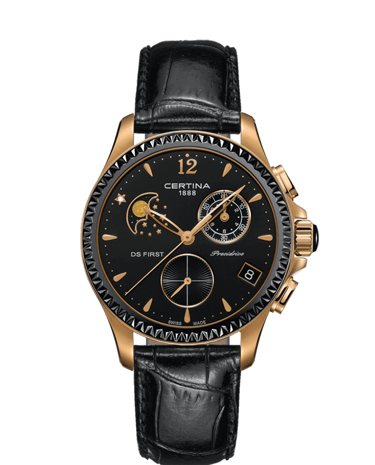 ساعت سرتینا زنانه کورنوگراف ( سه موتوره ) * موتور کوارتز * قاب استیل با روکش رزگلد PVD * بند چرم * شیشه ضدخش * مقاوم در برابر آب تا عمق 100 متر * ساخت سوئیس * دارای دو سال گارانتی شرکت کیش بهین